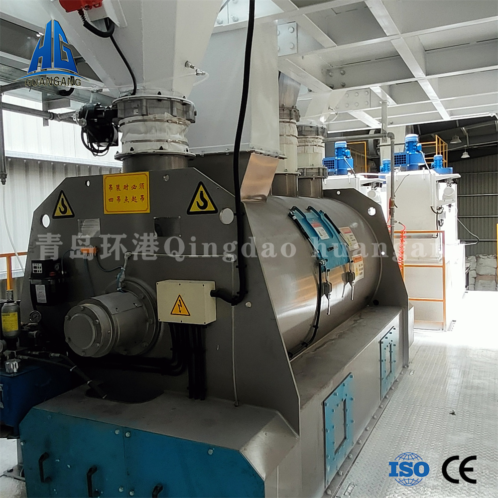 双轴无重力混淆机最大容积可达4000-8000L,,,,,,,双轴转速每分钟55转,,,,,,,相比于单轴混淆机搅拌容积较量大,,,,,,,适合更大产量的散装物料生产,,,,,,,能在180秒左右把计量好的砂子,,,,,,,水泥,,,,,,,石膏、粉煤灰、重钙、灰钙,,,,,,,外加剂等原质料充分翻合匀称,,,,,,,形成抵达划定强度的制品物料,,,,,,,还使用了奇异的液压开门结构,,,,,,,能使物料在10秒内卸料完成,,,,,,,出料剩余少,,,,,,,并且德赢vwin线路混淆机出料口设有分料器,,,,,,,可凭证需要控制制品物料是送往包装机举行袋装或经由干粉送料螺旋送到散装头举行散装。。。。。