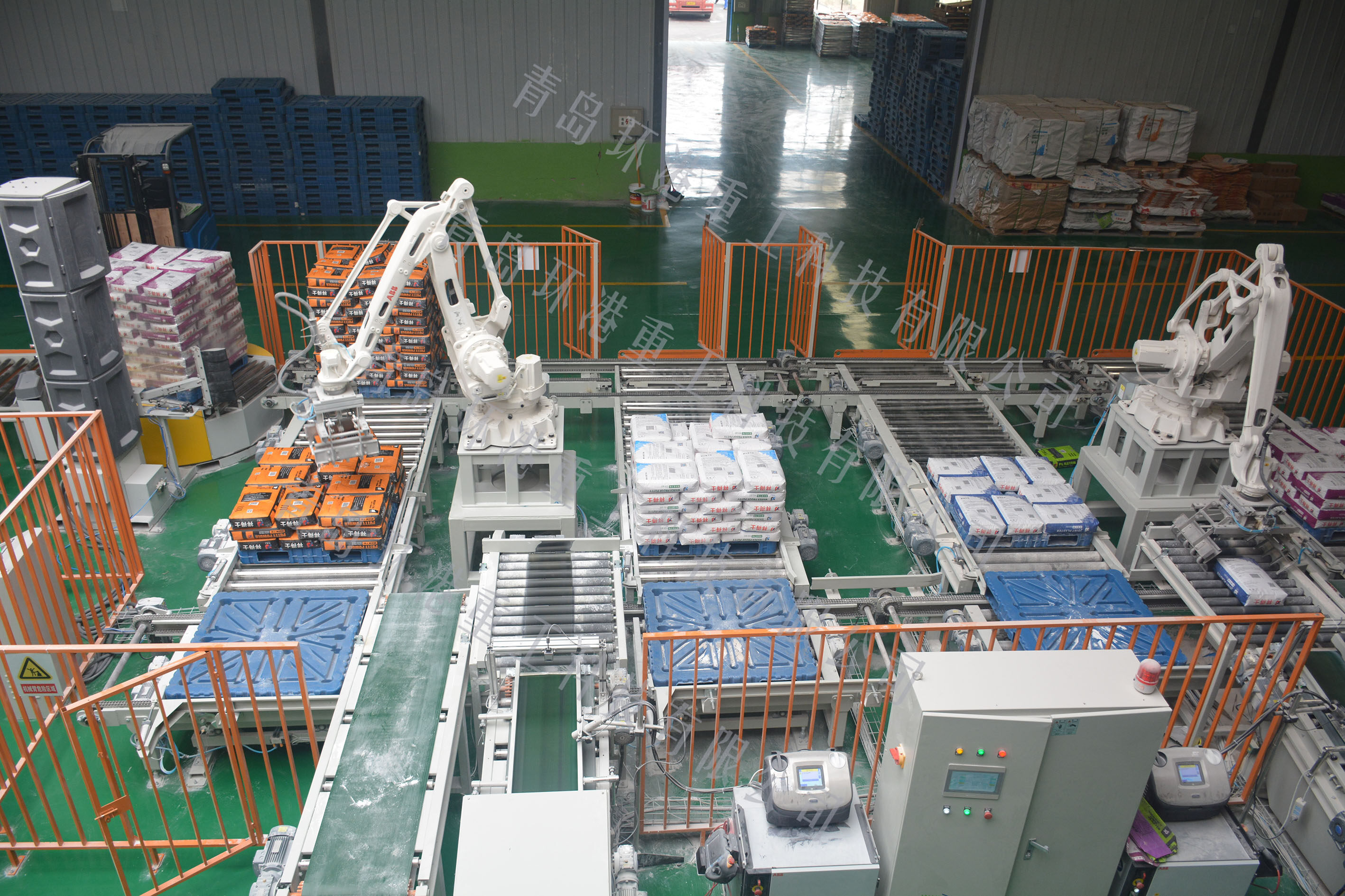 我们公司生产的码垛机专用于袋装干粉砂浆、袋装石膏砂浆、腻子粉等砂浆产品的码垛,,,,,阻止工人尘肺病等职业病的爆发,,,,,把卑劣情形下的人事情业转变为机械自行动业,,,,,为企业改善事情条件,,,,,减轻小我私家体力劳动,,,,,减员增效起到了要害作用。。。。。。。。